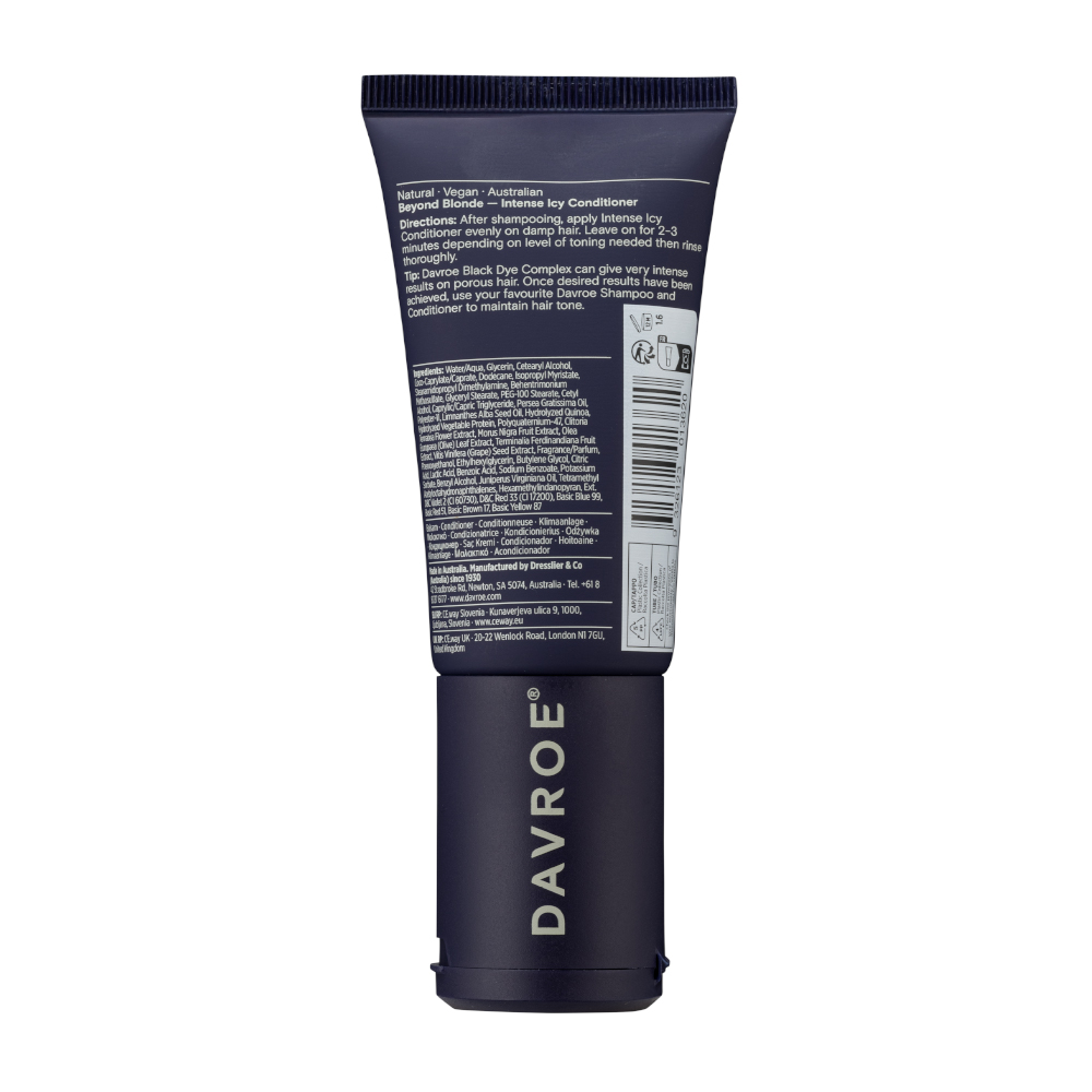 Odżywka Davroe Beyond Blonde to zaawansowany produkt tonujący oparty na technologii podwójnych pigmentów (Fiolet + Czarny) oraz kompleksie Davroe Black Dye Complex, dzięki którym skutecznie usuwa niepożądane żółte tony i wzmacnia lodowy odcień bardzo jasnych, a także platynowych blondów. Jest wprost idealnym wyborem dla osób pragnących utrzymać klarowność koloru lub subtelnie ochłodzić go między tonowaniami w salonie.